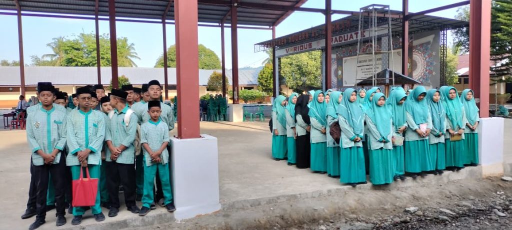 Sejak pagi para santri kelas IX tampak berdatangan memasuki lingkungan madrasah. Mereka berkumpul di depan aula mengikuti arahan awal sebelum pelaksanaan ujian dimulai.